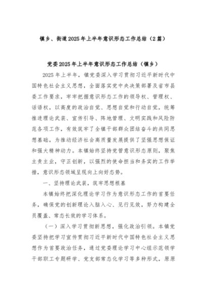 【七哥公文】2025年:(2篇)镇乡、街道2025年上半年意识形态工作总结+更多免费公文+VX:QiGeGongWen2024