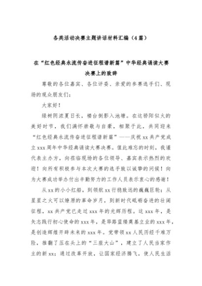 / 【七哥公文】2025年:(4篇)各类活动决赛主题讲话材料汇编+更多免费公文+VX:QiGeGongWen2024