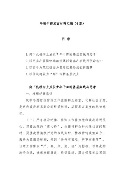 / 【七哥公文】2025年:(4篇)年轻干部发言材料汇编+更多免费公文+VX:QiGeGongWen2024