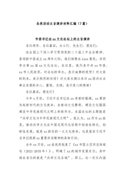 / 【七哥公文】2025年:(7篇)各类活动主旨演讲材料汇编+更多免费公文+VX:QiGeGongWen2024