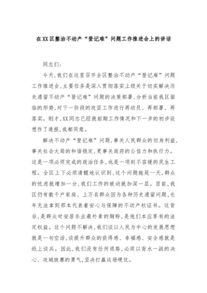 【七哥公文】2025年:在XX区整治不动产“登记难”问题工作推进会上的讲话+更多免费公文+VX:QiGeGongWen2024