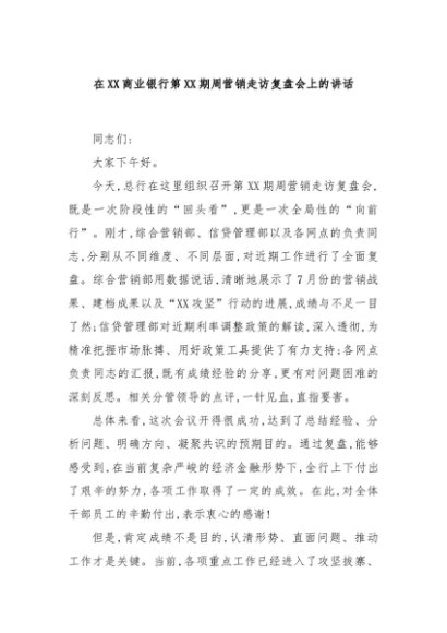 / 【七哥公文】2025年:在XX商业银行第XX期周营销走访复盘会上的讲话+更多免费公文+VX:QiGeGongWen2024