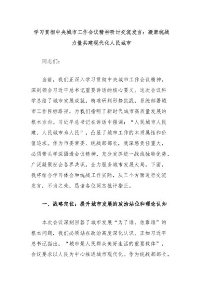 【七哥公文】2025年:学习贯彻中央城市工作会议精神研讨交流发言:凝聚统战力量共建现代化人民城市+更多免费公文+VX:QiGeGongWen2024