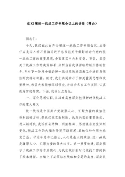 / 【七哥公文】2025年:在XX镇统一战线工作专题会议上的讲话(精品)+更多免费公文+VX:QiGeGongWen2024