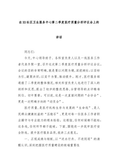 【七哥公文】2025年:在XX社区卫生服务中心第二季度医疗质量分析评议会上的讲话+更多免费公文+VX:QiGeGongWen2024