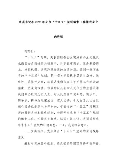 【七哥公文】2025年:市委书记在2025年全市“十五五”规划编制工作推进会上的讲话+更多免费公文+VX:QiGeGongWen2024