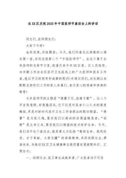 / 【七哥公文】2025年:在XX区庆祝2025年中国医师节座谈会上的讲话+更多免费公文+VX:QiGeGongWen2024