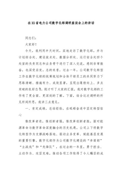 / 【七哥公文】2025年:在XX省电力公司数字化部调研座谈会上的讲话+更多免费公文+VX:QiGeGongWen2024