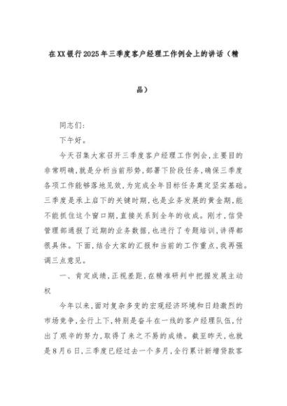 【七哥公文】2025年:在XX银行2025年三季度客户经理工作例会上的讲话(精品)+更多免费公文+VX:QiGeGongWen2024