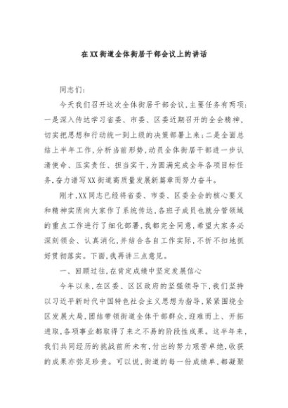 / 【七哥公文】2025年:在XX街道全体街居干部会议上的讲话+更多免费公文+VX:QiGeGongWen2024