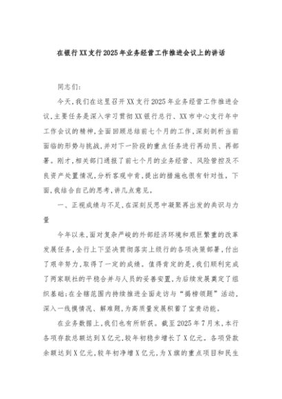 【七哥公文】2025年:在银行XX支行2025年业务经营工作推进会议上的讲话+更多免费公文+VX:QiGeGongWen2024
