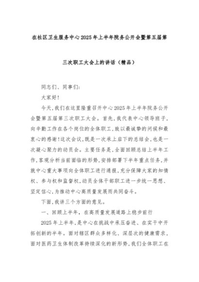 【七哥公文】2025年:在社区卫生服务中心2025年上半年院务公开会暨第五届第三次职工大会上的讲话(精品)+更多免费公文+VX:QiGeGongWen2024