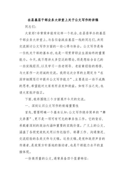 / 【七哥公文】2025年:在县基层干部业务大讲堂上关于公文写作的讲稿+更多免费公文+VX:QiGeGongWen2024
