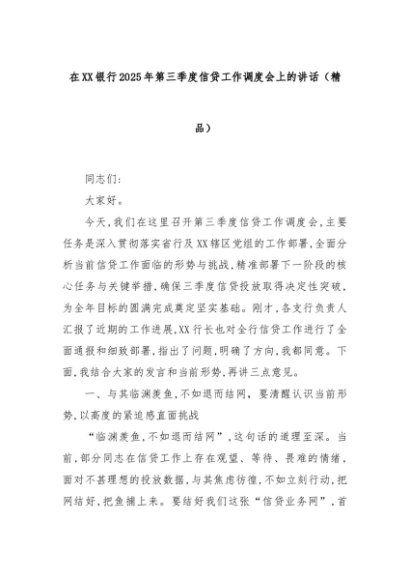 【七哥公文】2025年:在XX银行2025年第三季度信贷工作调度会上的讲话(精品)+更多免费公文+VX:QiGeGongWen2024
