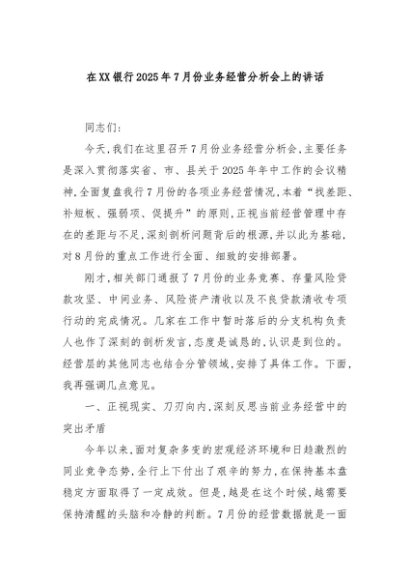 / 【七哥公文】2025年:在XX银行2025年7月份业务经营分析会上的讲话+更多免费公文+VX:QiGeGongWen2024
