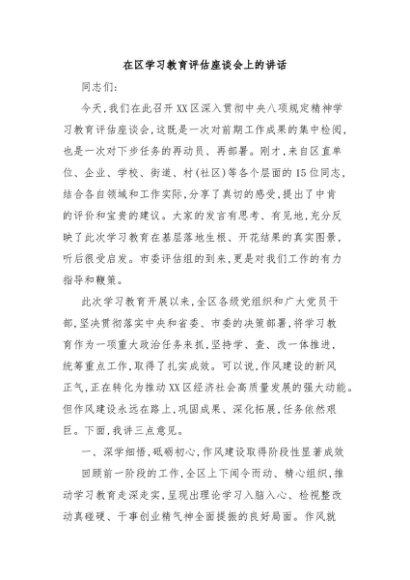 / 【七哥公文】2025年:在区学习教育评估座谈会上的讲话+更多免费公文+VX:QiGeGongWen2024