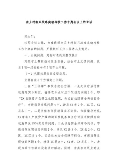 / 【七哥公文】2025年:在乡村振兴战略实绩考核工作专题会议上的讲话+更多免费公文+VX:QiGeGongWen2024