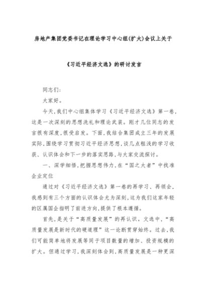 【七哥公文】2025年:房地产集团党委书记在理论学习中心组(扩大)会议上关于《习近平经济文选》的研讨发言+更多免费公文+VX:QiGeGongWen2024