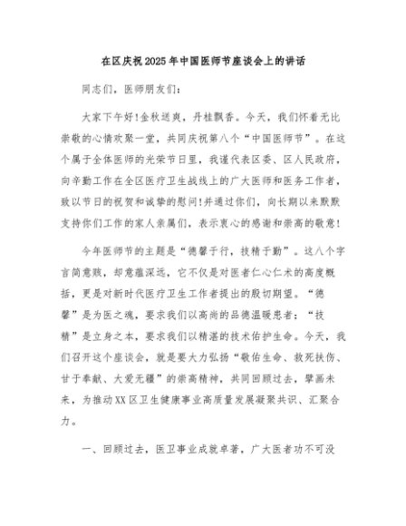 / 【七哥公文】2025年:在区庆祝2025年中国医师节座谈会上的讲话+更多免费公文+VX:QiGeGongWen2024