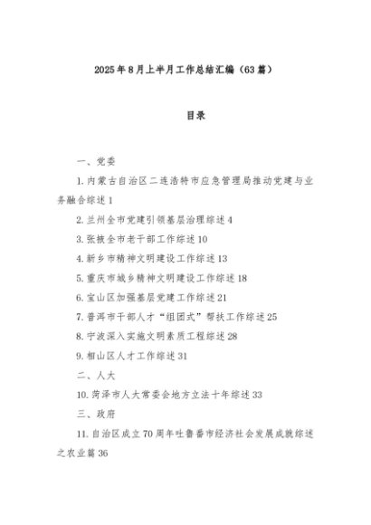 / 【七哥公文】2025年:(63篇)2025年8月上半月工作总结汇编+更多免费公文+VX:QiGeGongWen2024