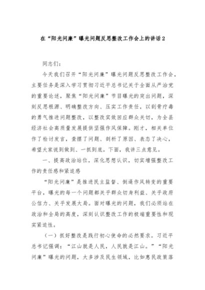 / 【七哥公文】2025年:在“阳光问廉”曝光问题反思整改工作会上的讲话2+更多免费公文+VX:QiGeGongWen2024