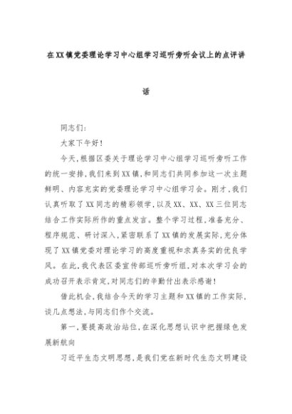 【七哥公文】2025年:在XX镇党委理论学习中心组学习巡听旁听会议上的点评讲话+更多免费公文+VX:QiGeGongWen2024