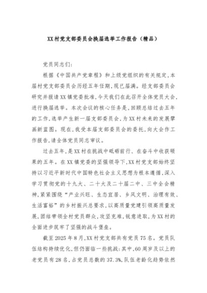 / 【七哥公文】2025年:XX村党支部委员会换届选举工作报告(精品)+更多免费公文+VX:QiGeGongWen2024