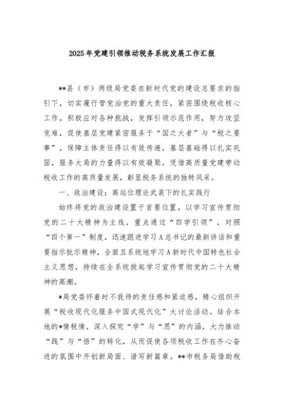 / 【七哥公文】2025年:2025年党建引领推动税务系统发展工作汇报+更多免费公文+VX:QiGeGongWen2024
