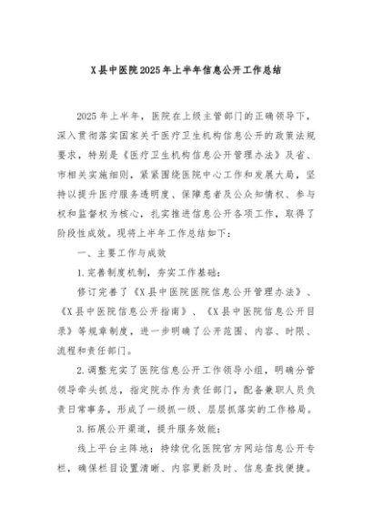 / 【七哥公文】2025年:X县中医院2025年上半年信息公开工作总结+更多免费公文+VX:QiGeGongWen2024