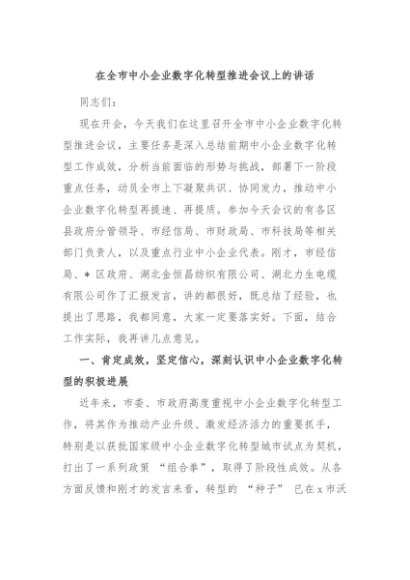 / 【七哥公文】2025年:在全市中小企业数字化转型推进会议上的讲话+更多免费公文+VX:QiGeGongWen2024