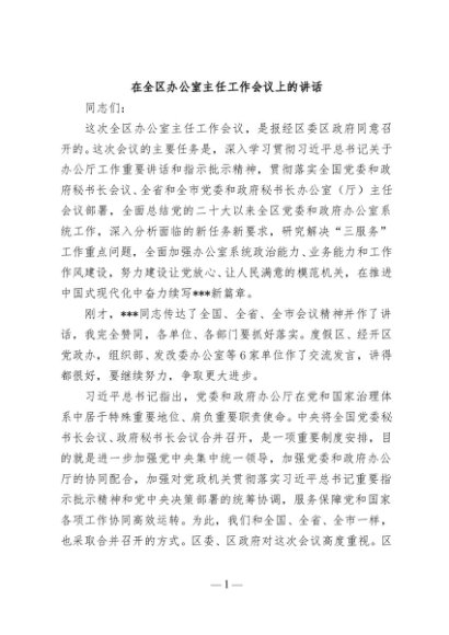 / 【七哥公文】2025年:在全区党委和政府办公室主任会议上的讲话+更多免费公文+VX:QiGeGongWen2024