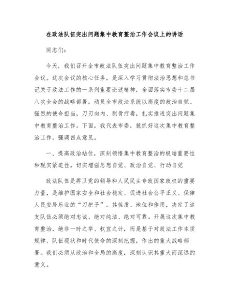 / 【七哥公文】2025年:在政法队伍突出问题集中教育整治工作会议上的讲话+更多免费公文+VX:QiGeGongWen2024