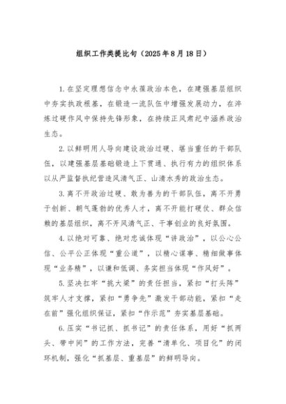 【七哥公文】2025年:组织工作类提比句(2025年8月18日)+更多免费公文+VX:QiGeGongWen2024