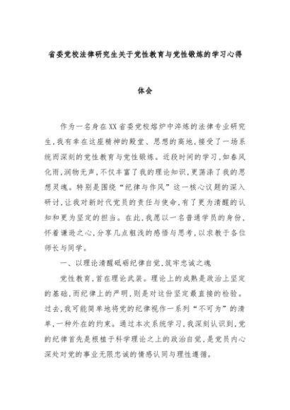 【七哥公文】2025年:省委党校法律研究生关于党性教育与党性锻炼的学习心得体会+更多免费公文+VX:QiGeGongWen2024