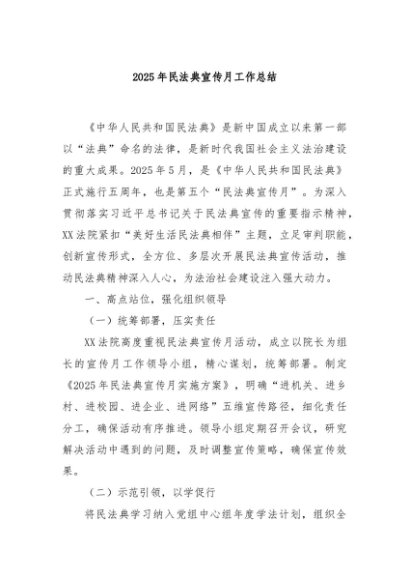 / 【七哥公文】2025年:2025年民法典宣传月工作总结+更多免费公文+VX:QiGeGongWen2024