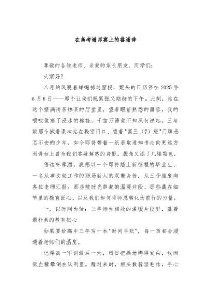 / 【七哥公文】2025年:在高考谢师宴上的答谢辞+更多免费公文+VX:QiGeGongWen2024