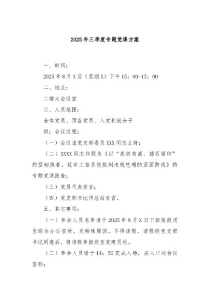 【七哥公文】2025年:2025年三季度专题党课方案+更多免费公文+VX:QiGeGongWen2024