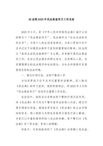 / 【七哥公文】2025年:XX法院2025年民法典宣传月工作总结+更多免费公文+VX:QiGeGongWen2024