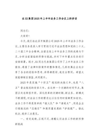 / 【七哥公文】2025年:在XX集团2025年上半年法务工作会议上的讲话+更多免费公文+VX:QiGeGongWen2024