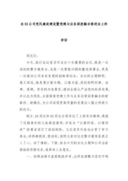 【七哥公文】2025年:在XX公司党风廉政建设暨党建与业务深度融合推进会上的讲话+更多免费公文+VX:QiGeGongWen2024