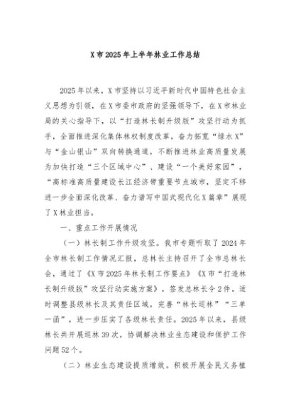 / 【七哥公文】2025年:X市2025年上半年林业工作总结+更多免费公文+VX:QiGeGongWen2024