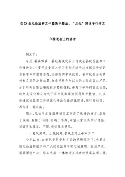 【七哥公文】2025年:在XX县纪检监察工作暨集中整治、“三化”建设年行动工作推进会上的讲话+更多免费公文+VX:QiGeGongWen2024
