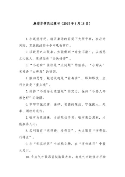 【七哥公文】2025年:廉洁自律类过渡句(2025年8月18日)+更多免费公文+VX:QiGeGongWen2024