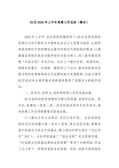 / 【七哥公文】2025年:XX区2025年上半年党建工作总结(精品)+更多免费公文+VX:QiGeGongWen2024
