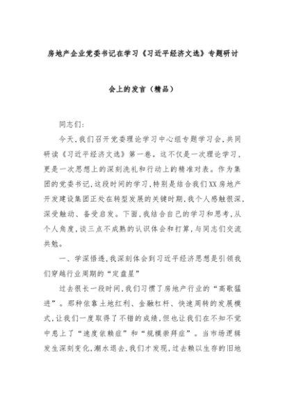 【七哥公文】2025年:房地产企业党委书记在学习《总书记经济文选》专题研讨会上的发言(精品)+更多免费公文+VX:QiGeGongWen2024