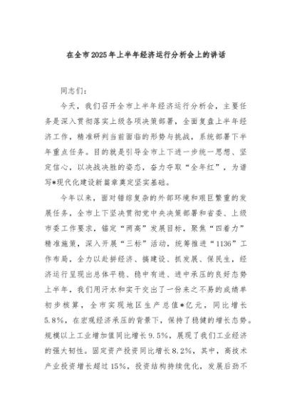 / 【七哥公文】2025年:在全市2025年上半年经济运行分析会上的讲话+更多免费公文+VX:QiGeGongWen2024