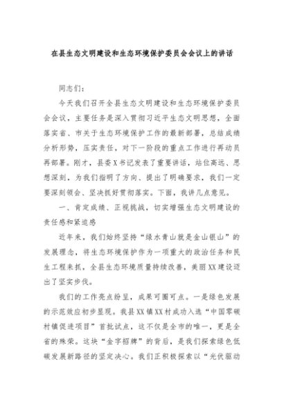 / 【七哥公文】2025年:在县生态文明建设和生态环境保护委员会会议上的讲话+更多免费公文+VX:QiGeGongWen2024