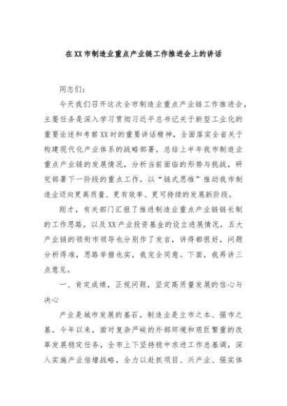 / 【七哥公文】2025年:在XX市制造业重点产业链工作推进会上的讲话+更多免费公文+VX:QiGeGongWen2024