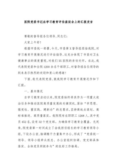 / 【七哥公文】2025年:医院党委书记在学习教育评估座谈会上的汇报发言+更多免费公文+VX:QiGeGongWen2024