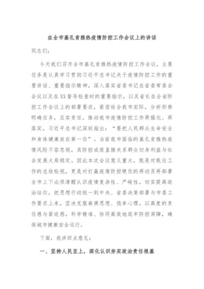/ 【七哥公文】2025年:在全市基孔肯雅热疫情防控工作会议上的讲话+更多免费公文+VX:QiGeGongWen2024